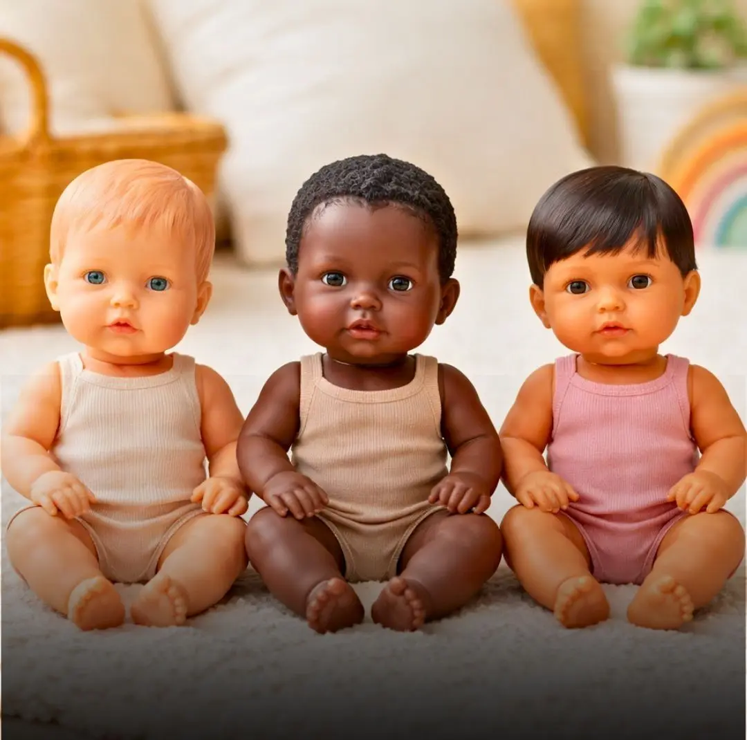Een Australische moeder, Jean, deelde een TikTok-video waarin ze drie babypoppen van hetzelfde bedrijf, Miniland, vergelijkt. Ze wijst erop dat de zwarte pop opvallend grotere lippen, een bredere neus en een meer uitgesproken voorhoofd heeft in vergelijking met de witte en bruine versies.