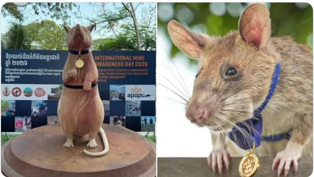 In Cambodja is een standbeeld geplaatst voor Magawa, een rat die bekend werd door het opsporen van gevaarlijke explosieven. Tijdens zijn leven vond hij meer dan 100 niet-ontplofte bommen en mijnen. Hierdoor hielp hij om gebieden veiliger te maken voor mensen. Voor zijn werk kreeg hij een speciale medaille als eer. Magawa overleed op 8-jarige leeftijd op een natuurlijke manier. Zijn verhaal laat zien dat zelfs kleine dieren een grote rol kunnen spelen bij het redden van levens en het beschermen van gemeenschappen.
