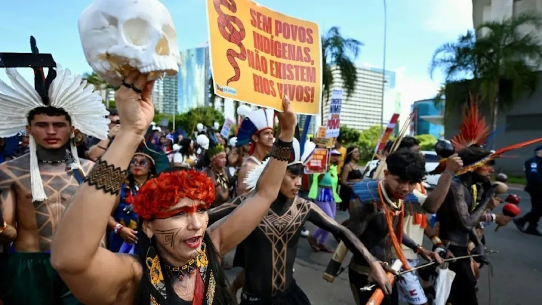 Duizenden inheemsen marcheerden dinsdag in de Braziliaanse hoofdstad Brasilia om te protesteren tegen wat zij beschouwen als schendingen van hun landrechten door grote bedrijven die landbouw-, houtkap- en mijnbouwprojecten uitvoeren.