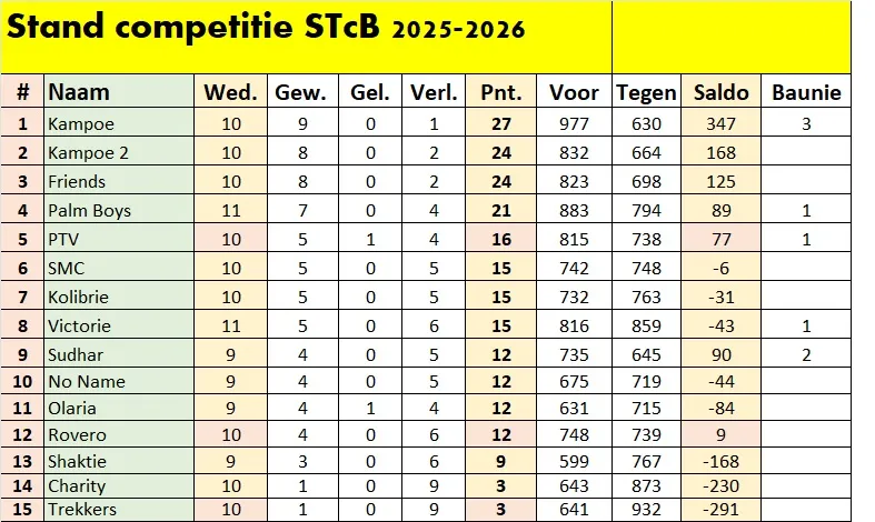 Hoogste score PTV: Petrick Pinas – Viresh Thakoerdien 25 punten.