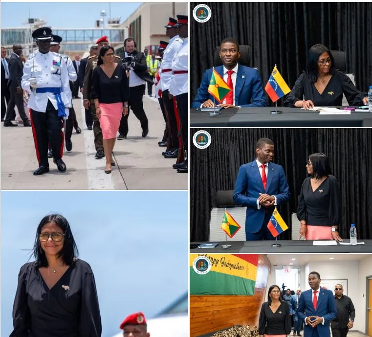 De Venezolaanse waarnemend president Delcy Rodríguez is aangekomen in Grenada voor een officieel bezoek, waarbij zij een speld droeg met een kaart waarop ook de Essequibo-regio van Guyana als Venezolaans gebied staat afgebeeld. De keuze voor deze speld wordt gezien als een politiek signaal, aangezien Venezuela het gebied blijft claimen.