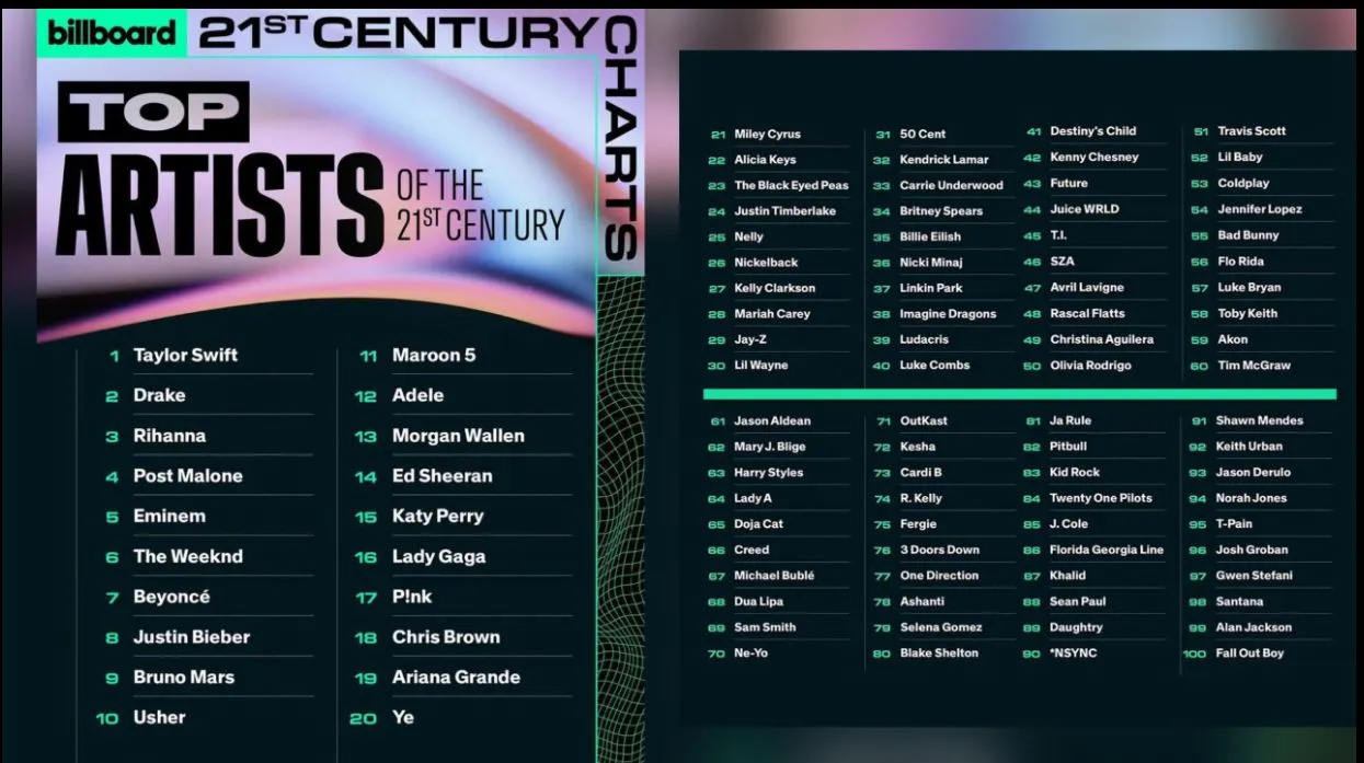 De artiestenranglijst combineert albumverkoop, streaming en radio. Een internationale groep blijft dominant met langdurige aanwezigheid aan de top. Andere gevestigde namen volgen door consistente releases en touractiviteit. Nieuwe artiesten stijgen tijdelijk, maar missen vaak de brede impact om hoog te blijven. De ranking toont dat succes niet alleen afhankelijk is van één hit, maar van totale marktactiviteit.