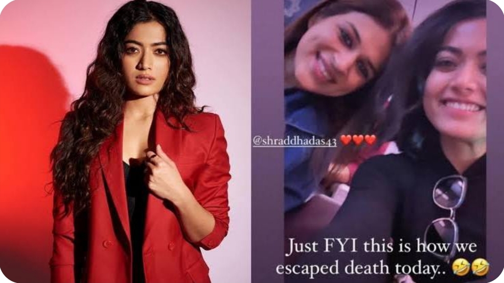 Rashmika ging naar Instagram en deelde een selfie met acteur Shraddha Das en een andere afbeelding, waarop te zien is hoe de voeten van beide acteurs hard tegen de treeplank worden gedrukt. ‘Even ter informatie: dit is hoe we vandaag aan de dood zijn ontsnapt’, luidt haar onderschrift.