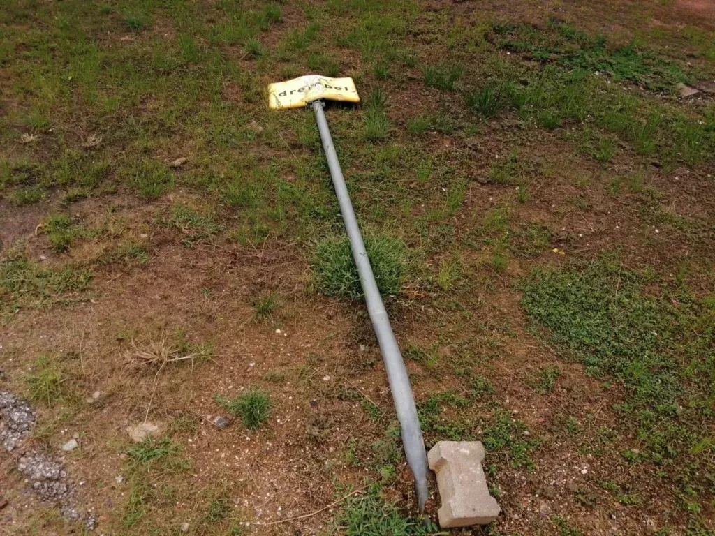 Terwijl de roep om meer veiligheid in het verkeer groter lijkt dan ooit, zien wij dat verkeersborden vaak ook worden vernield. Op Beekhuizen ligt langs de weg een bord dat aangeeft dat een drempel nadert midden in het gras.