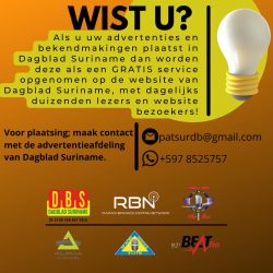 De prijzen van enkele groentesoorten verschillen bij diverse standhouders. Je gaat bij een ieder een andere prijs krijgen, anders is het geen hossel”, zegt een standhouder die verkoopt op de Zondagse Markt. “Er zijn sommigen die groenten al vanaf SRD 15 verkopen, en tajerblad en enkele andere groenten waaronder amsoi vanaf SRD 25. Je hebt […]